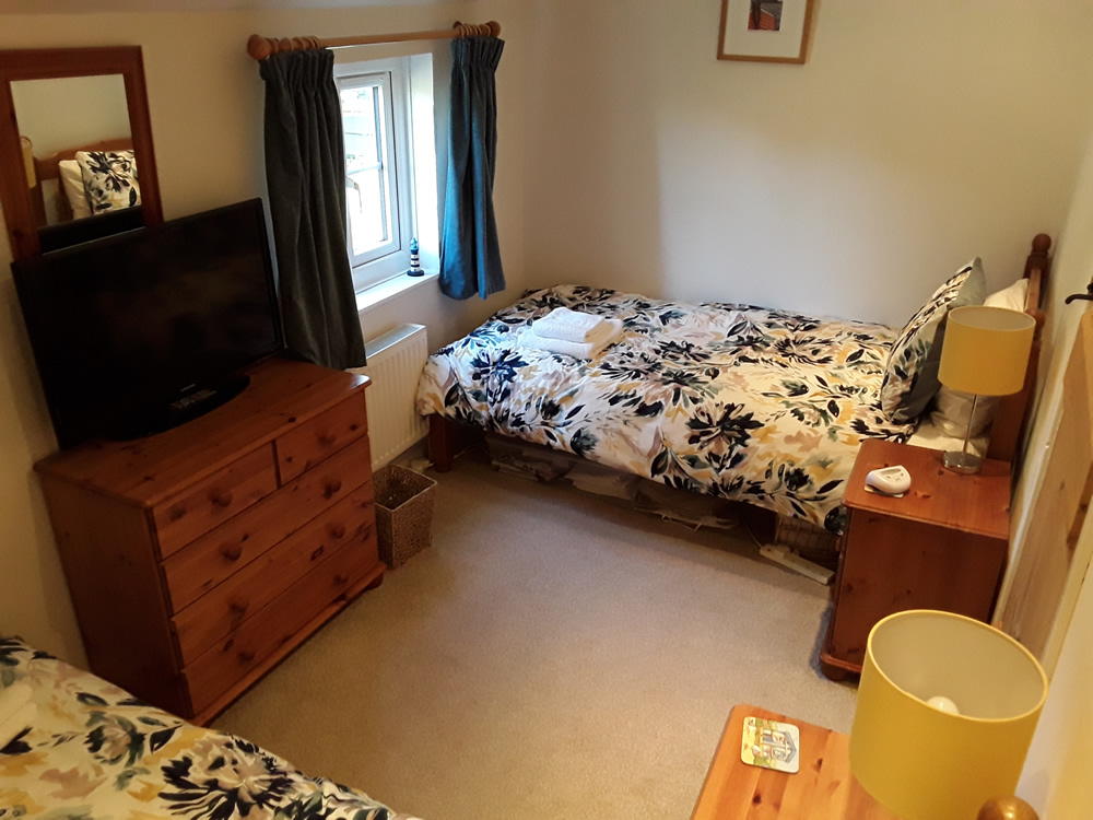 The cottage has 2 bedrooms, one with a double bed and the other with 2 singles. A travel cot and high chair are available.